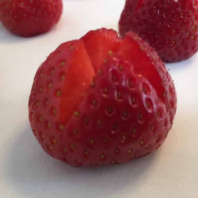 Jeg har her brugt nogle pæne store jordbær – men størrelsen bestemmer du jo selv 🙂