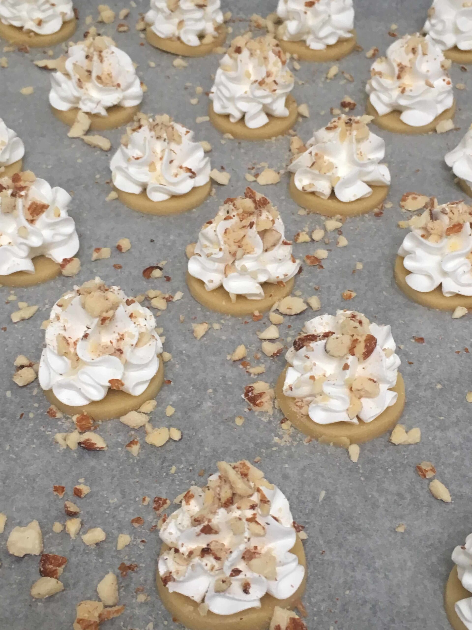 Nøddetoppe – Super lækre små kager med topping af mandler. Gode til kaffen eller som tilbehør til et stykke godt is.