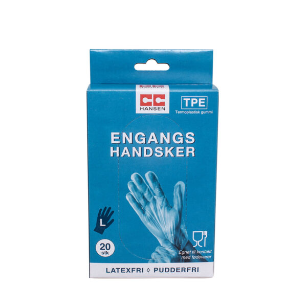 Termoplastisk gummi (TPE) har samme elasticitet som gummi. Det gør handskerne bløde, behagelige at have på og med god gennemføling. De er tynde og meget lette at iføre sig.