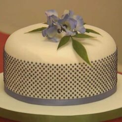 - Brug nu de præcist afmærkede huller som baggrund for placering af glasur-prikker, små sukkerperler – eller brug dem som grundlag for andre dekorationer.